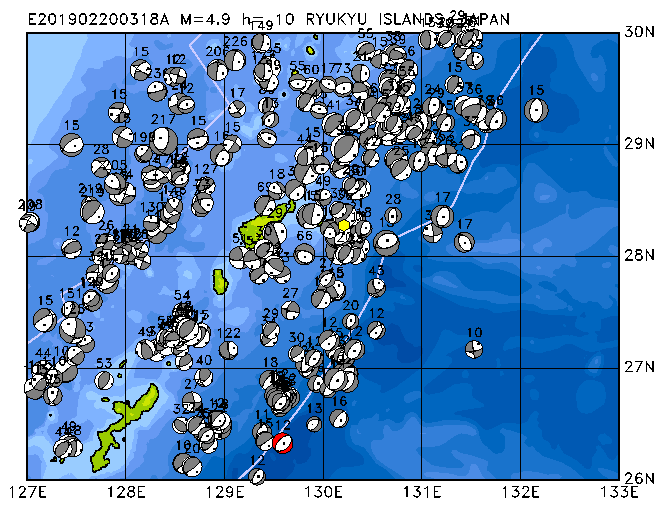 218 RYUKYU ISLANDS, JAPAN PDEW h= 10 M=5.0 E201902210211A
