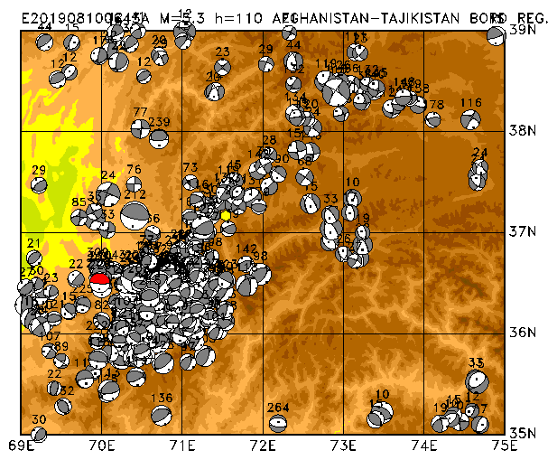 192 HINDU KUSH REGION, AFGHANISTAN PDEW h= 43 M=5.0 E201908212010A