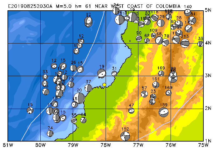 232 NEAR WEST COAST OF COLOMBIA PDEW h= 62 M=5.0 E201908252030A