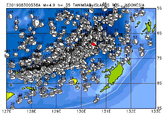265 TANIMBAR ISLANDS REG., INDONESIA PDEW h= 35 M=4.9 E201908300538A