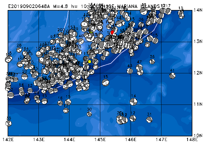 013 SOUTH OF MARIANA ISLANDS PDEW h= 10 M=4.8 E201909020648A