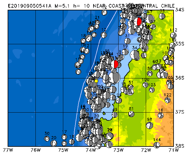 042 NEAR COAST OF CENTRAL CHILE PDEW h= 10 M=5.1 E201909050541A