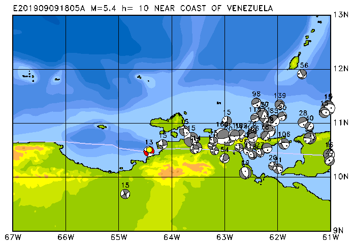 089 NEAR COAST OF VENEZUELA PDEW h= 10 M=5.4 E201909091805A