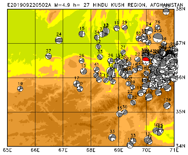 196 HINDU KUSH REGION, AFGHANISTAN PDEW h= 28 M=4.9 E201909220502A