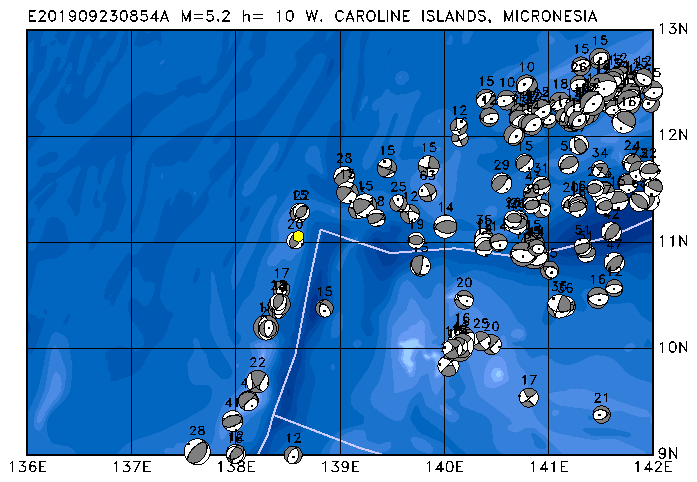 201 W. CAROLINE ISLANDS, MICRONESIA PDEW h= 10 M=5.2 E201909230854A