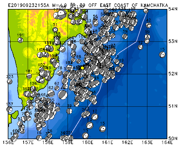 206 OFF EAST COAST OF KAMCHATKA PDEW h= 39 M=4.9 E201909232155A