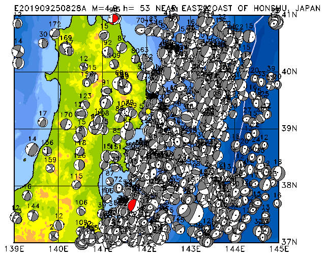 225 NEAR EAST COAST OF HONSHU, JAPAN PDEW h= 53 M=4.9 E201909250828A