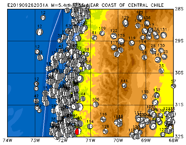 248 NEAR COAST OF CENTRAL CHILE PDEW h= 36 M=5.4 E201909262031A