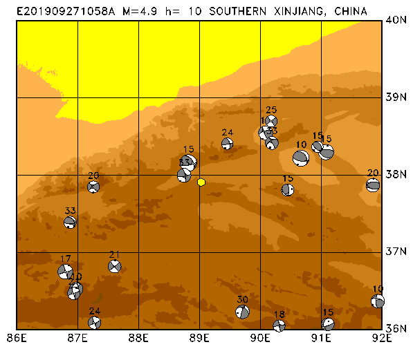 257 SOUTHERN XINJIANG, CHINA PDEW h= 10 M=4.9 E201909271058A