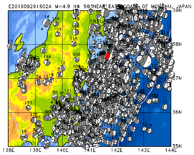 278 NEAR EAST COAST OF HONSHU, JAPAN PDEW h= 56 M=4.9 E201909291602A
