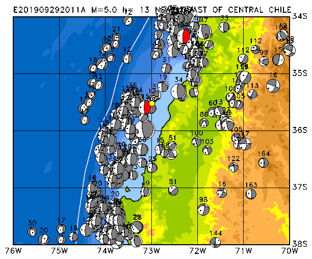 282 NEAR COAST OF CENTRAL CHILE PDEW h= 14 M=5.0 E201909292011A