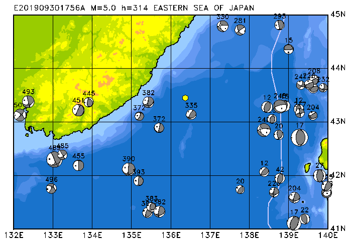 288 EASTERN SEA OF JAPAN PDEW h=314 M=5.0 E201909301756A