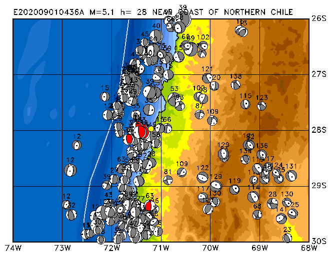 005 NEAR COAST OF NORTHERN CHILE PDEW h= 28 M=5.1 E202009010436A
