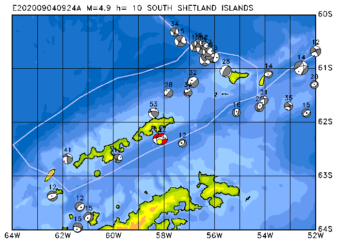 062 SOUTH SHETLAND ISLANDS PDEW h= 10 M=4.9 E202009040924A