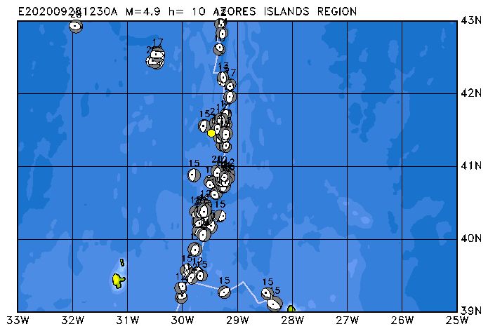 301 AZORES ISLANDS REGION PDEW h= 10 M=4.9 E202009281230A