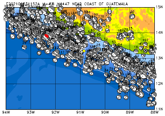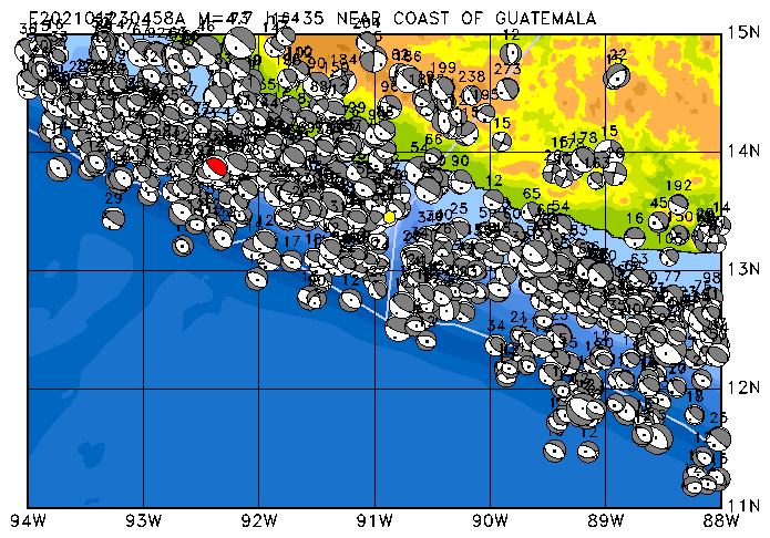 021 NEAR COAST OF GUATEMALA PDEW h= 42 M=4.7 E202101031322A