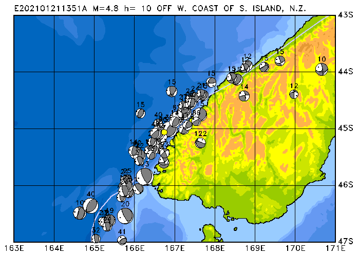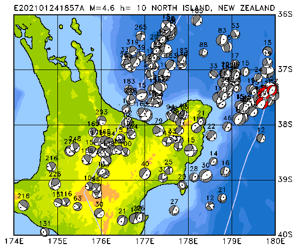 273 NORTH ISLAND, NEW ZEALAND PDEW h= 10 M=4.6 E202101241857A