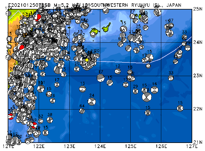 279 SOUTHWESTERN RYUKYU ISL., JAPAN PDEW h= 10 M=5.2 E202101250725B