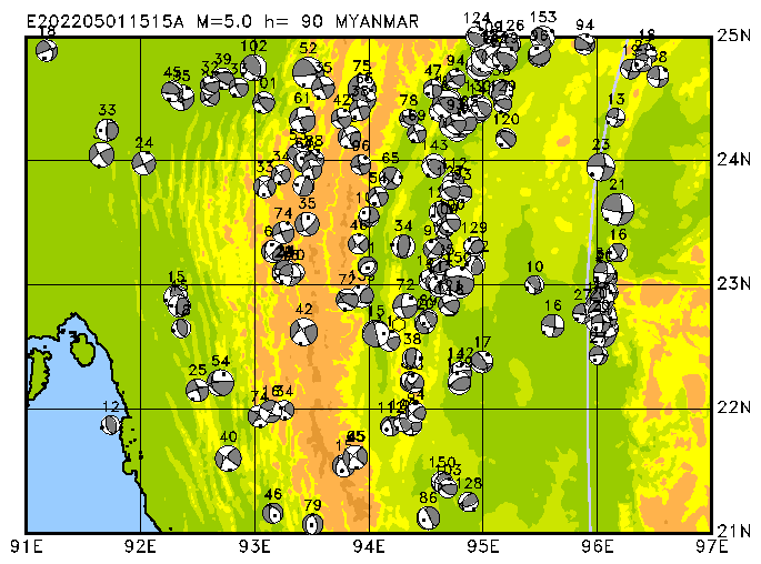 007 MYANMAR PDEW h= 91 M=5.0 E202205011515A