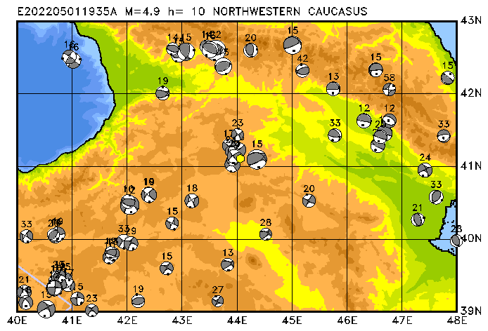 009 NORTHWESTERN CAUCASUS PDEW h= 10 M=4.9 E202205011935A