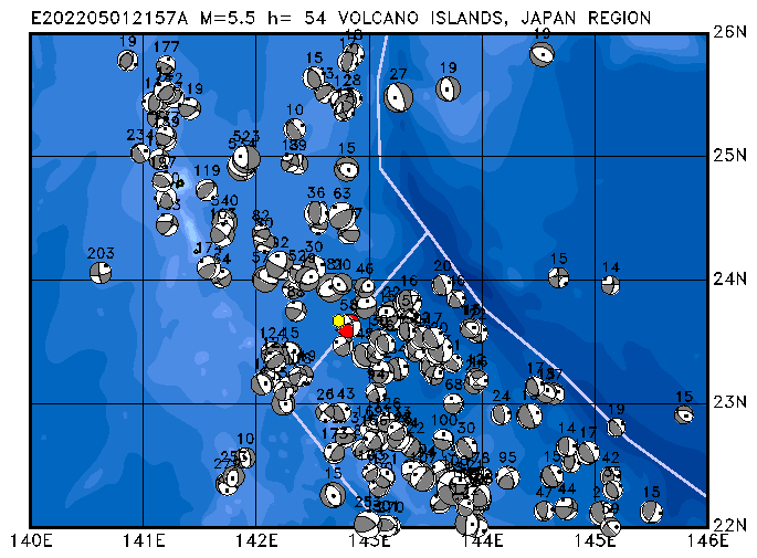 011 VOLCANO ISLANDS, JAPAN REGION PDEW h= 54 M=5.5 E202205012157A