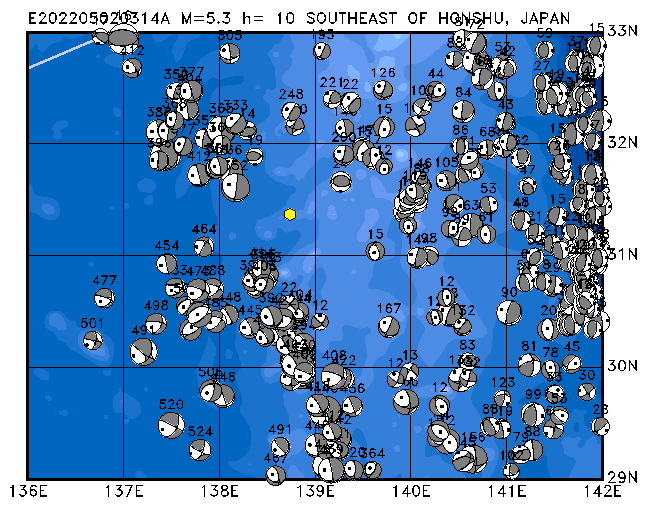 024 NEAR S. COAST OF HONSHU, JAPAN PDEW h=135 M=4.8 E202205031039A