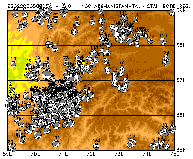 238 HINDU KUSH REGION, AFGHANISTAN PDEW h=108 M=4.9 E202205240711A