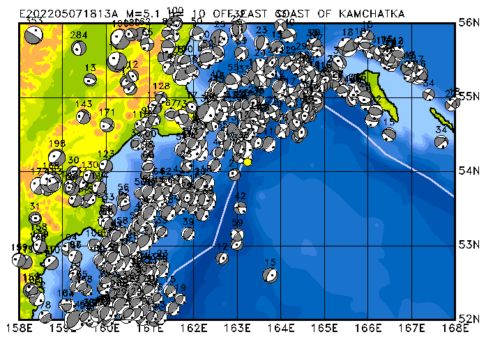 064 OFF EAST COAST OF KAMCHATKA PDEW h= 10 M=5.1 E202205071813A