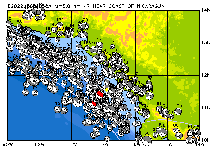 250 NEAR COAST OF NICARAGUA PDEW h= 47 M=5.0 E202205251858A