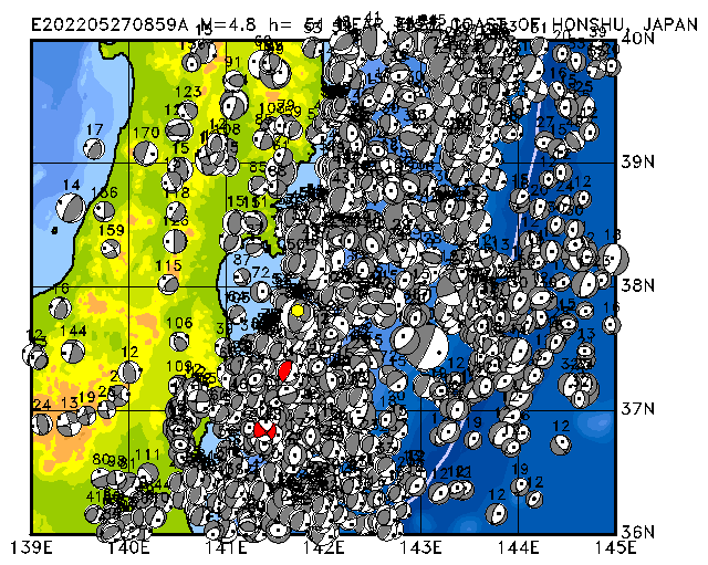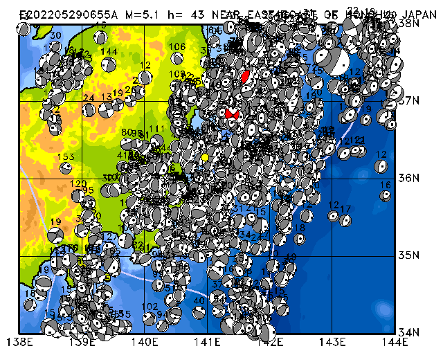 281 NEAR EAST COAST OF HONSHU, JAPAN PDEW h= 43 M=5.1 E202205290655A