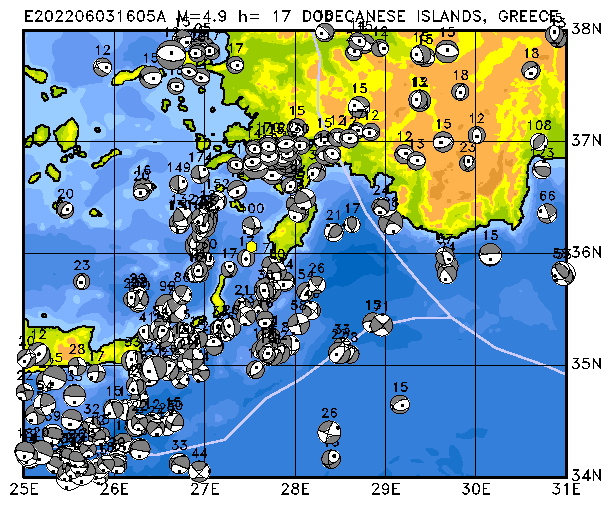 031 DODECANESE ISLANDS, GREECE PDEW h= 18 M=4.9 E202206031605A
