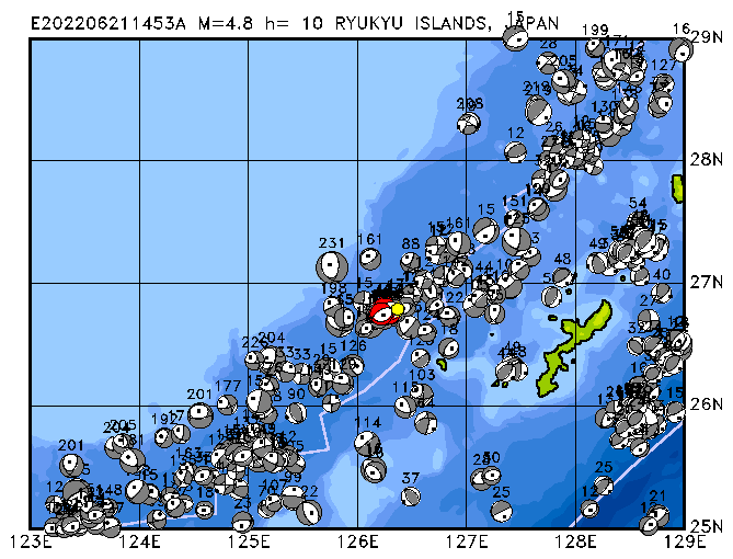219 RYUKYU ISLANDS, JAPAN PDEW h= 10 M=4.8 E202206211453A