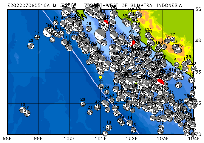 060 SOUTHWEST OF SUMATRA, INDONESIA PDEW h= 7 M=5.2 E202207060510A