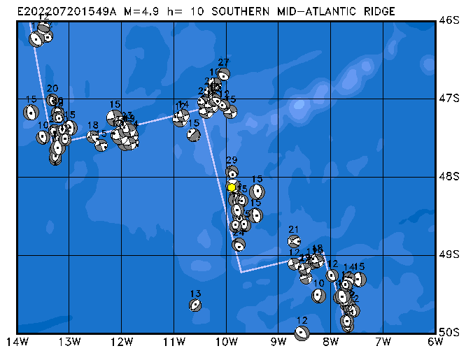 309 SOUTHERN MID-ATLANTIC RIDGE SWEQ h= 10 M=4.9 E202207291407A