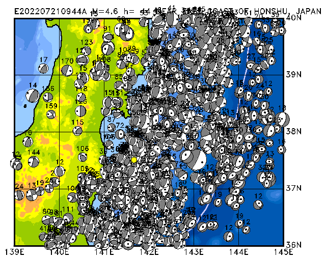 012 OFF EAST COAST OF HONSHU, JAPAN PDEW h= 10 M=4.9 E202207021253A