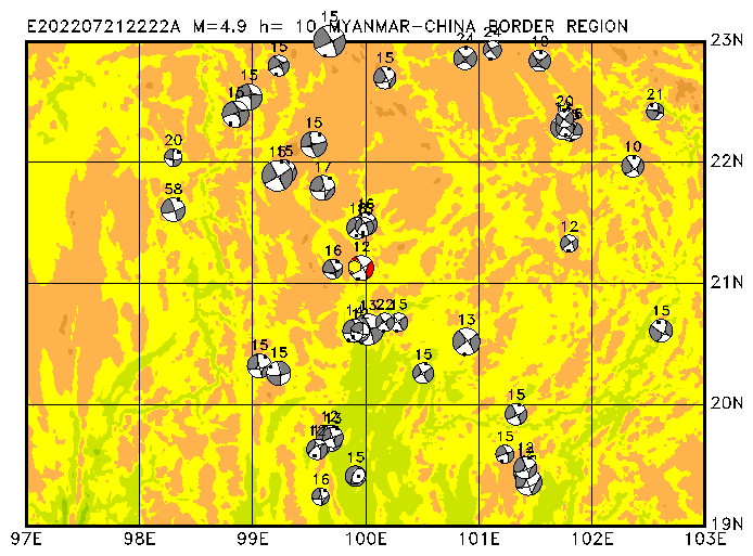 305 MYANMAR-CHINA BORDER REGION PDEW h= 10 M=4.8 E202207290958A