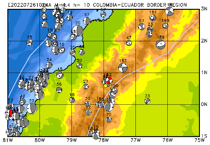 272 COLOMBIA-ECUADOR BORDER REGION PDEW h= 10 M=4.4 E202207261024A