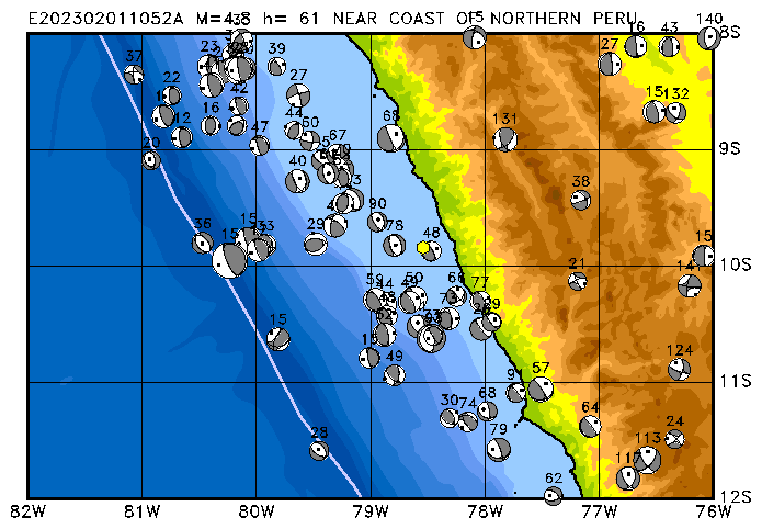 005 NEAR COAST OF NORTHERN PERU PDEW h= 61 M=4.8 E202302011052A