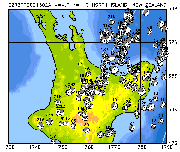 009 NORTH ISLAND, NEW ZEALAND PDEW h= 10 M=4.6 E202302021302A