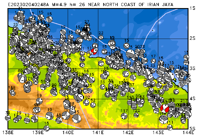 025 NEAR NORTH COAST OF IRIAN JAYA PDEW h= 27 M=4.9 E202302040248A