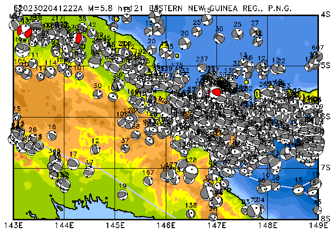 028 EASTERN NEW GUINEA REG., P.N.G. PDEW h=121 M=5.8 E202302041222A