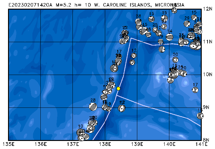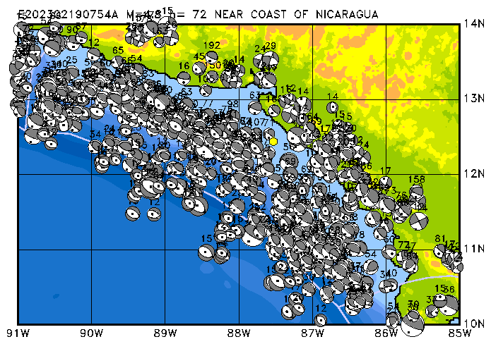 333 NEAR COAST OF NICARAGUA PDEW h= 71 M=5.2 E202302271846A