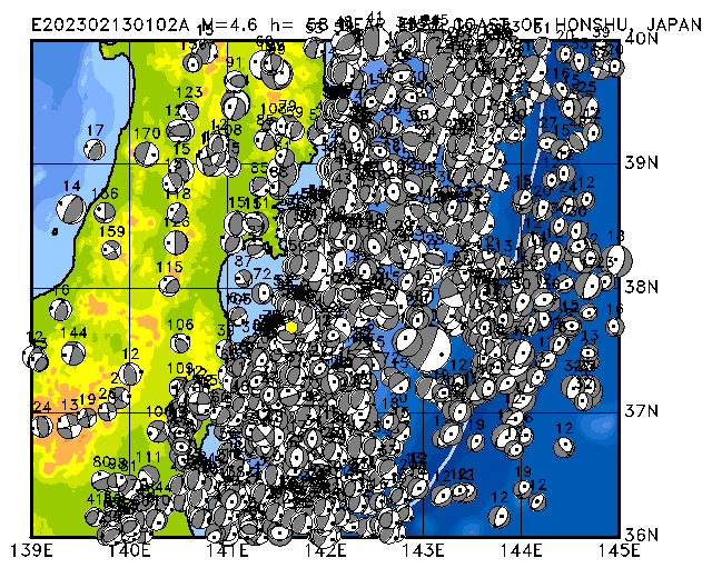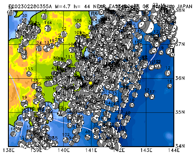 334 NEAR EAST COAST OF HONSHU, JAPAN PDEW h= 44 M=4.7 E202302280355A