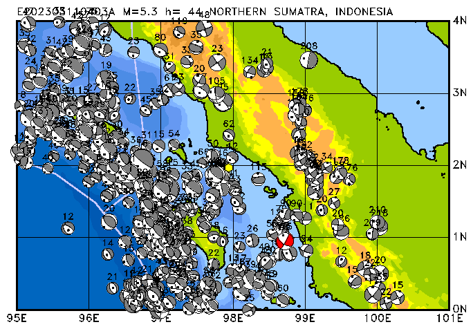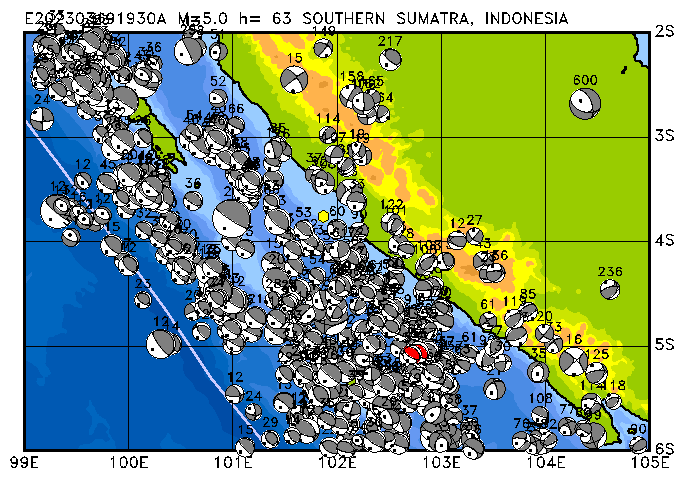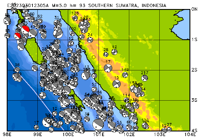 010 SOUTHERN SUMATRA, INDONESIA PDEW h= 93 M=5.0 E202303012305A