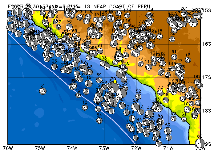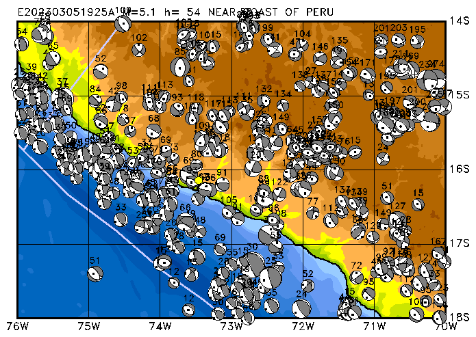049 NEAR COAST OF PERU PDEW h= 54 M=5.1 E202303051925A