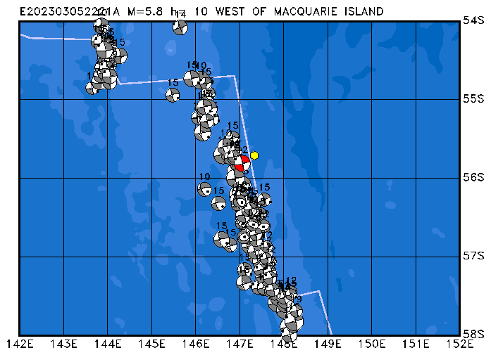 053 WEST OF MACQUARIE ISLAND PDEW h= 10 M=5.8 E202303052221A