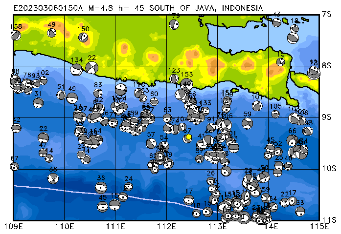055 SOUTH OF JAVA, INDONESIA PDEW h= 45 M=4.8 E202303060150A