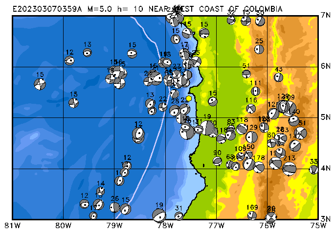 064 NEAR WEST COAST OF COLOMBIA PDEW h= 10 M=5.0 E202303070359A