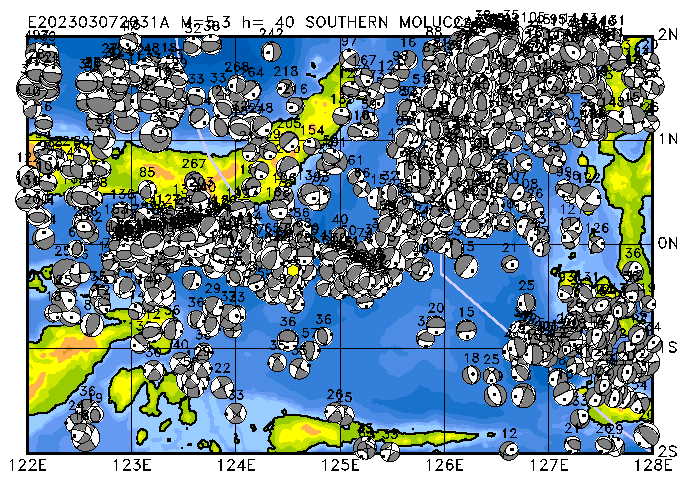 075 SOUTHERN MOLUCCA SEA PDEW h= 40 M=5.3 E202303072031A