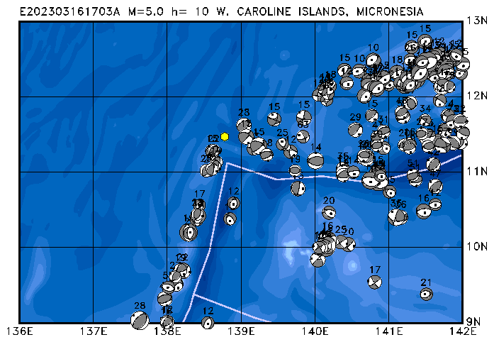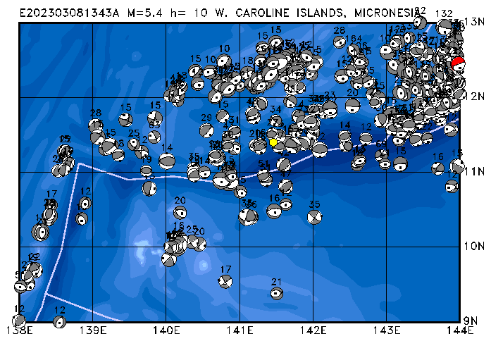 084 W. CAROLINE ISLANDS, MICRONESIA PDEW h= 10 M=5.4 E202303081343A